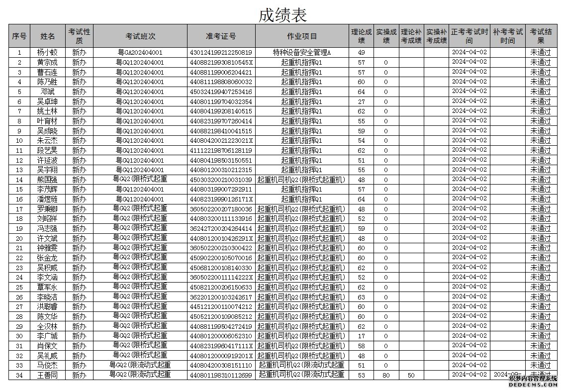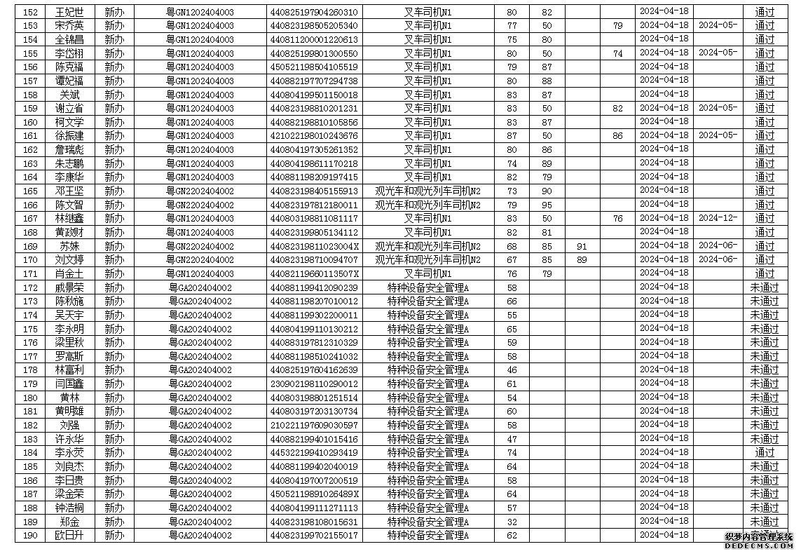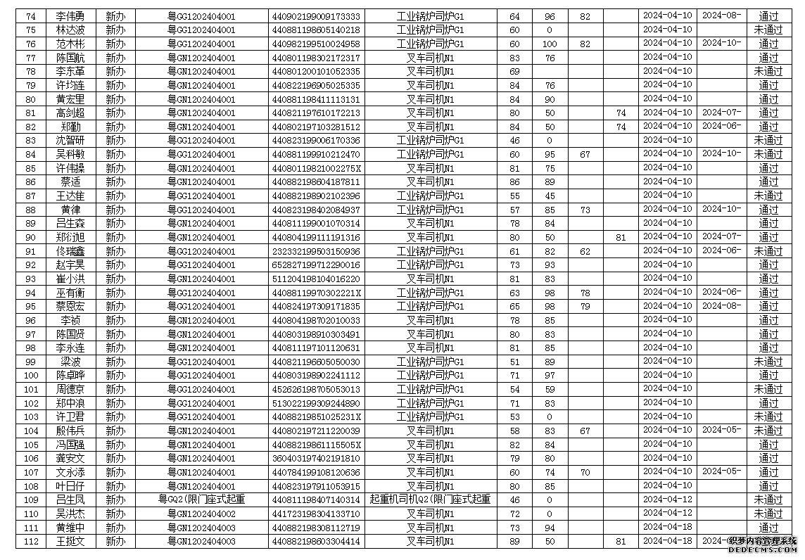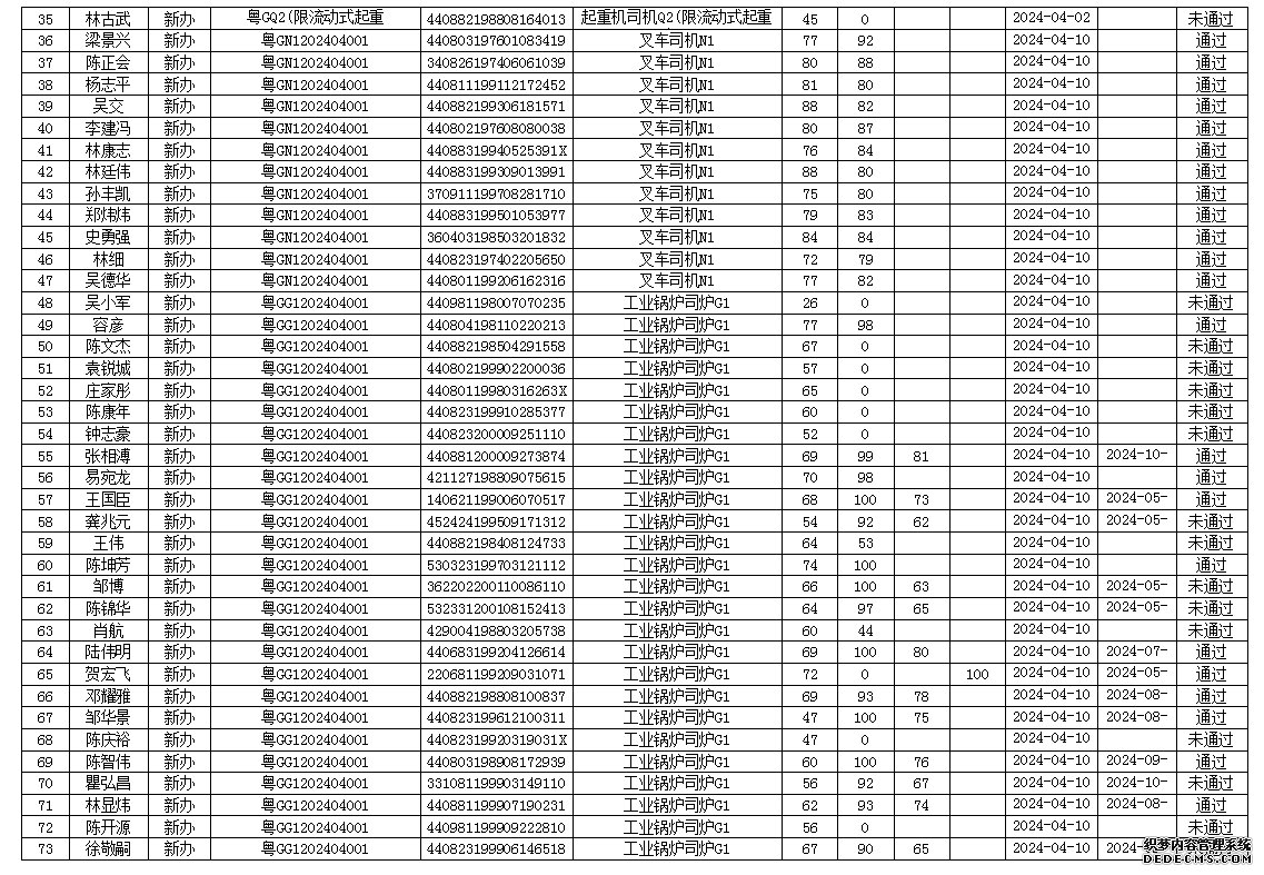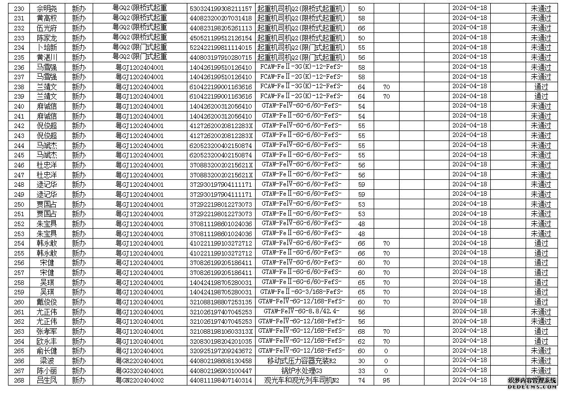 2024年4月特種設(shè)備作業(yè)人員考試成績