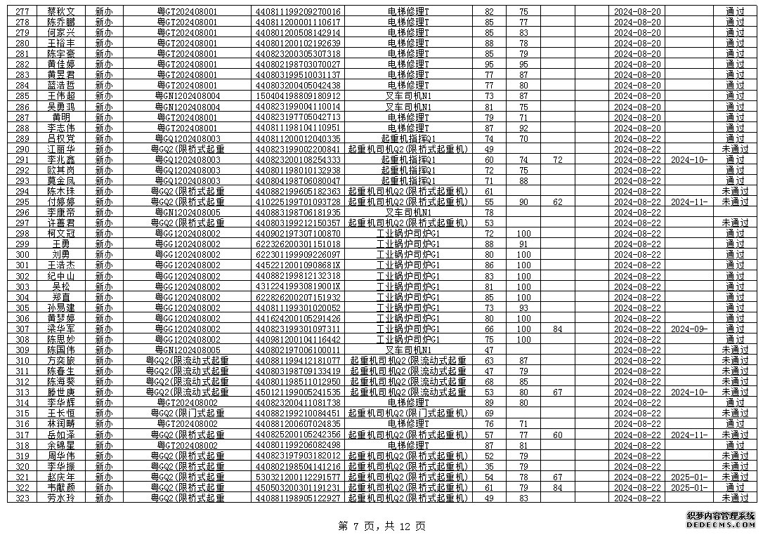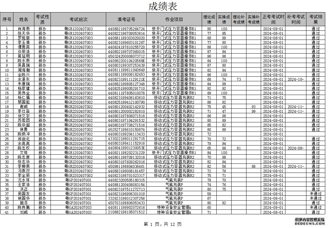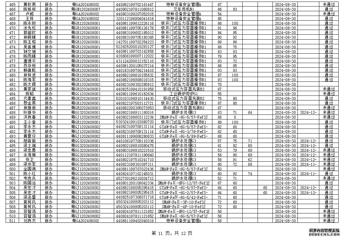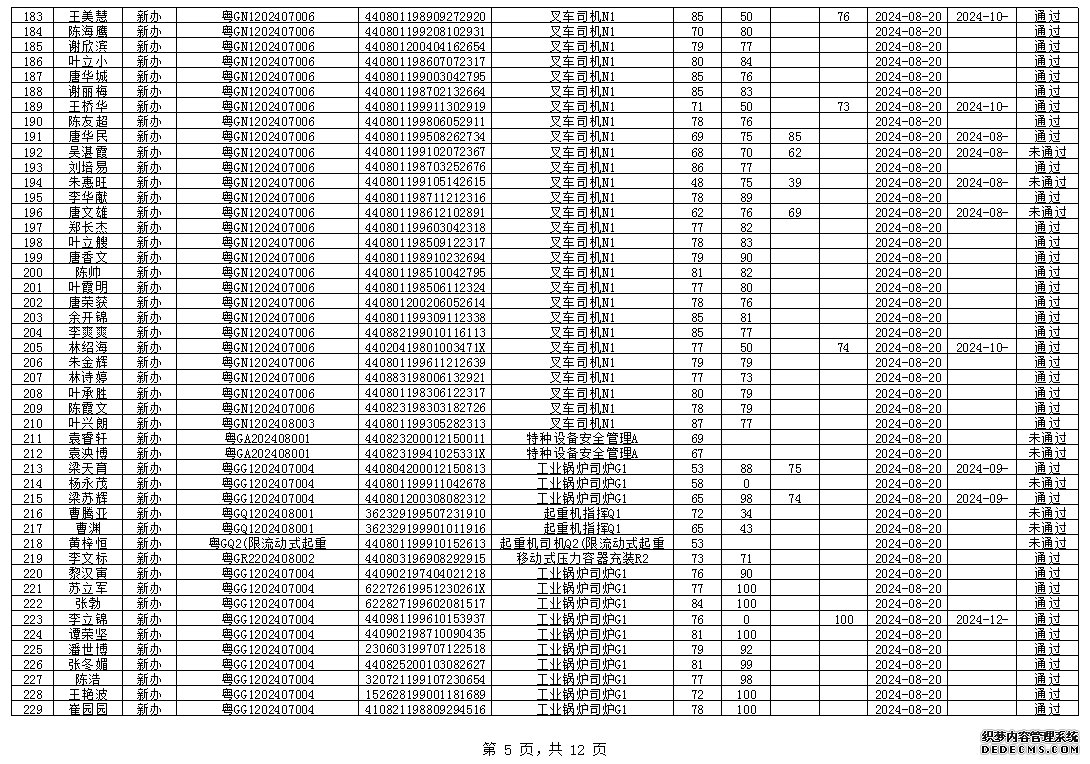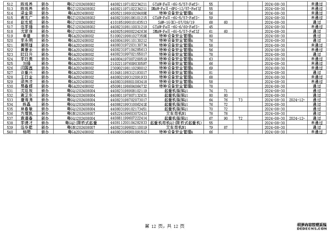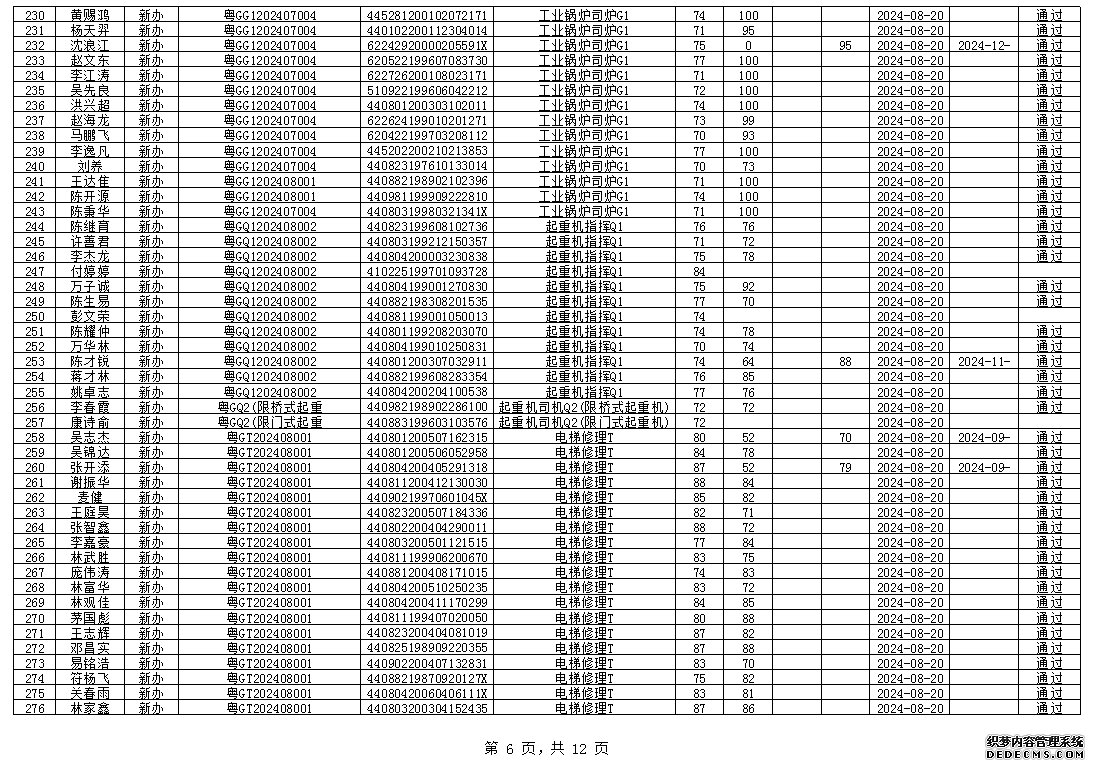 2024年8月特種設(shè)備作業(yè)人員考試成績