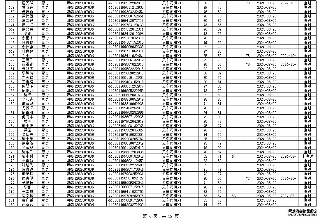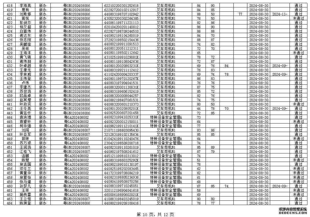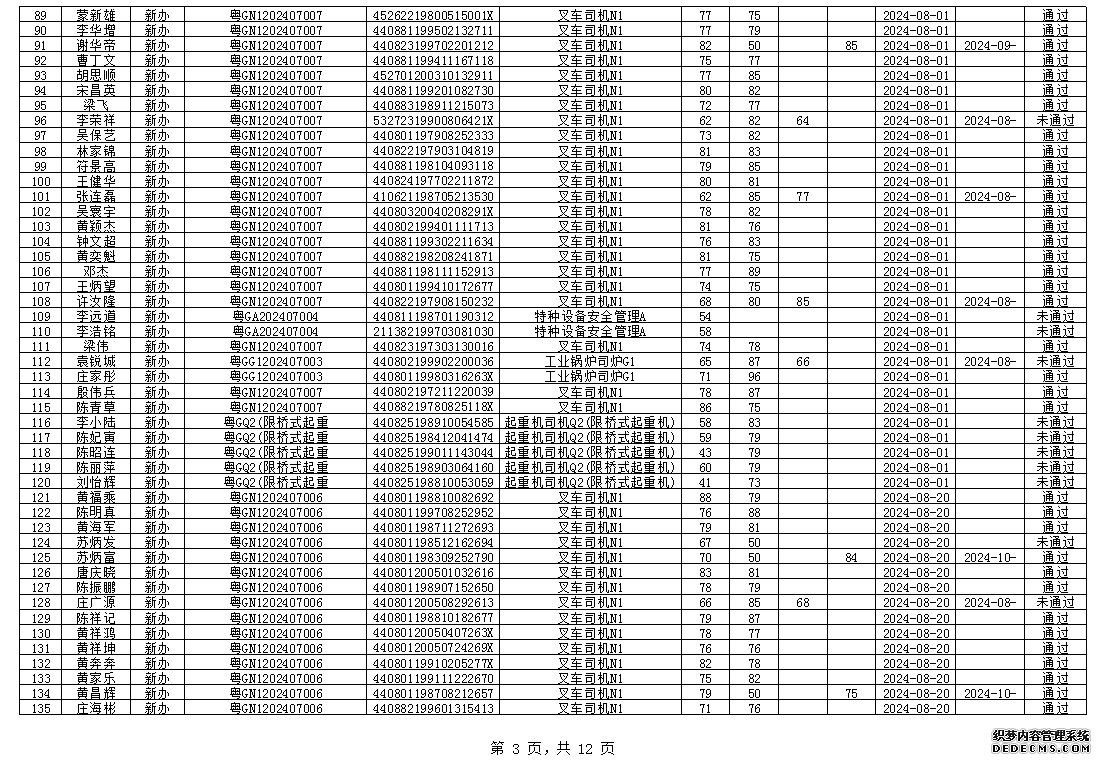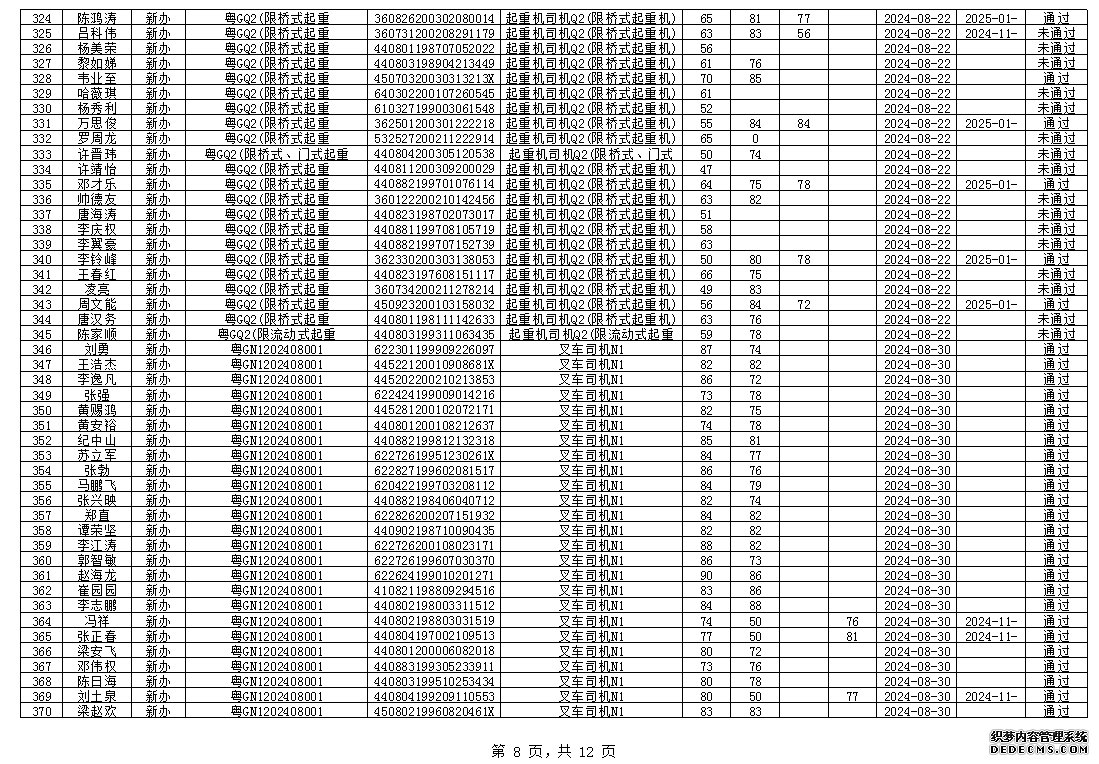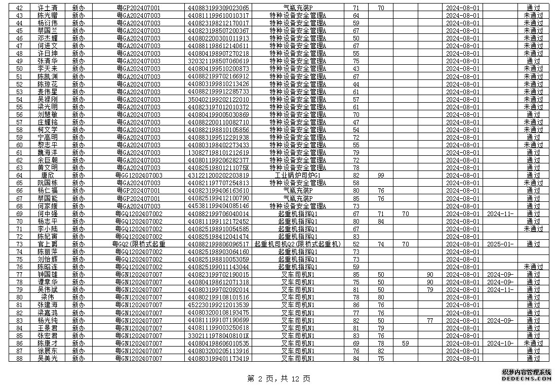 2024年8月特種設(shè)備作業(yè)人員考試成績