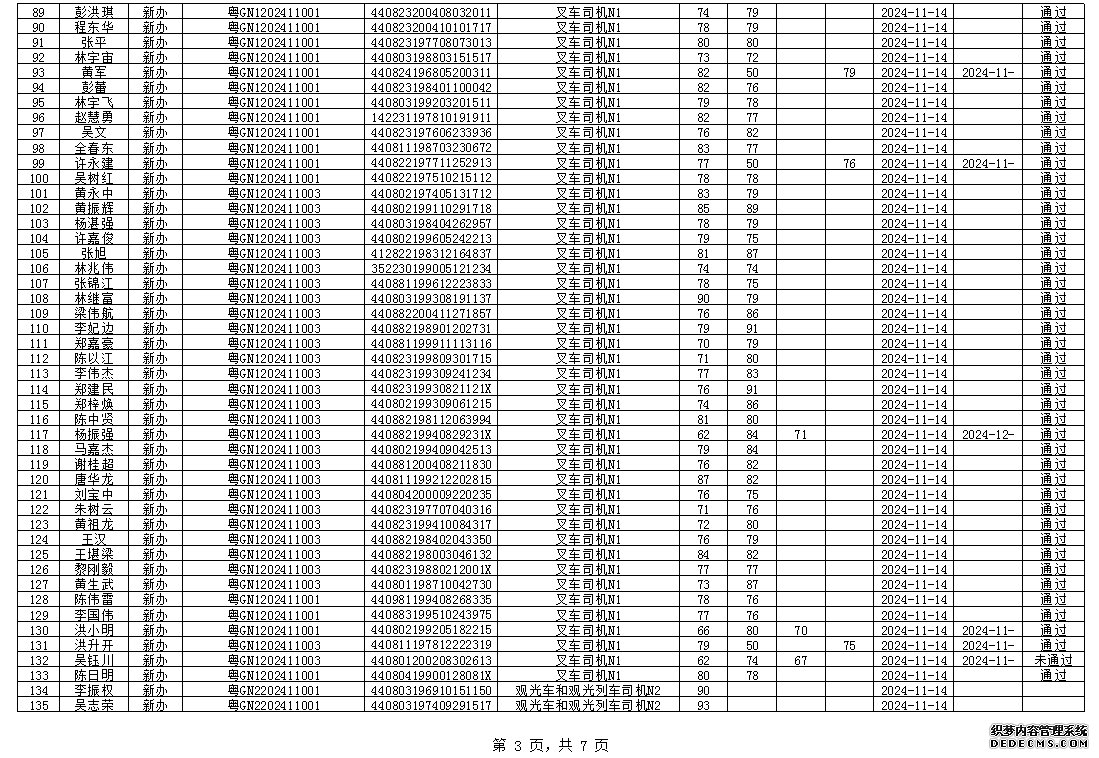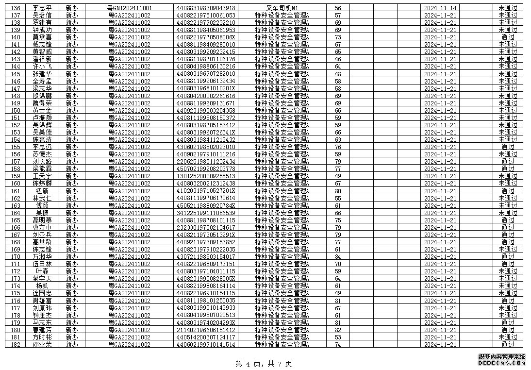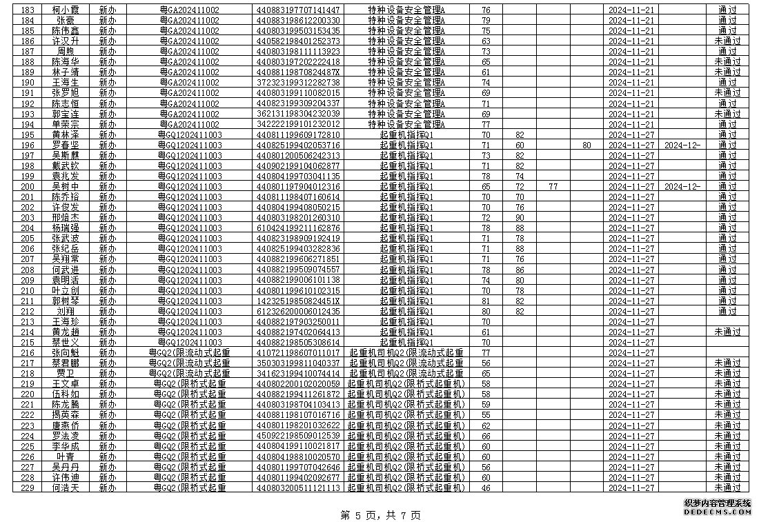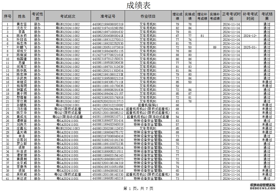 2024年11月特種設(shè)備作業(yè)人員考試成績