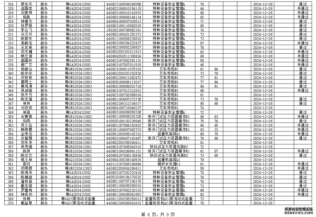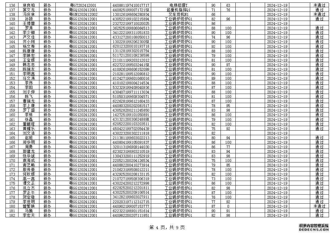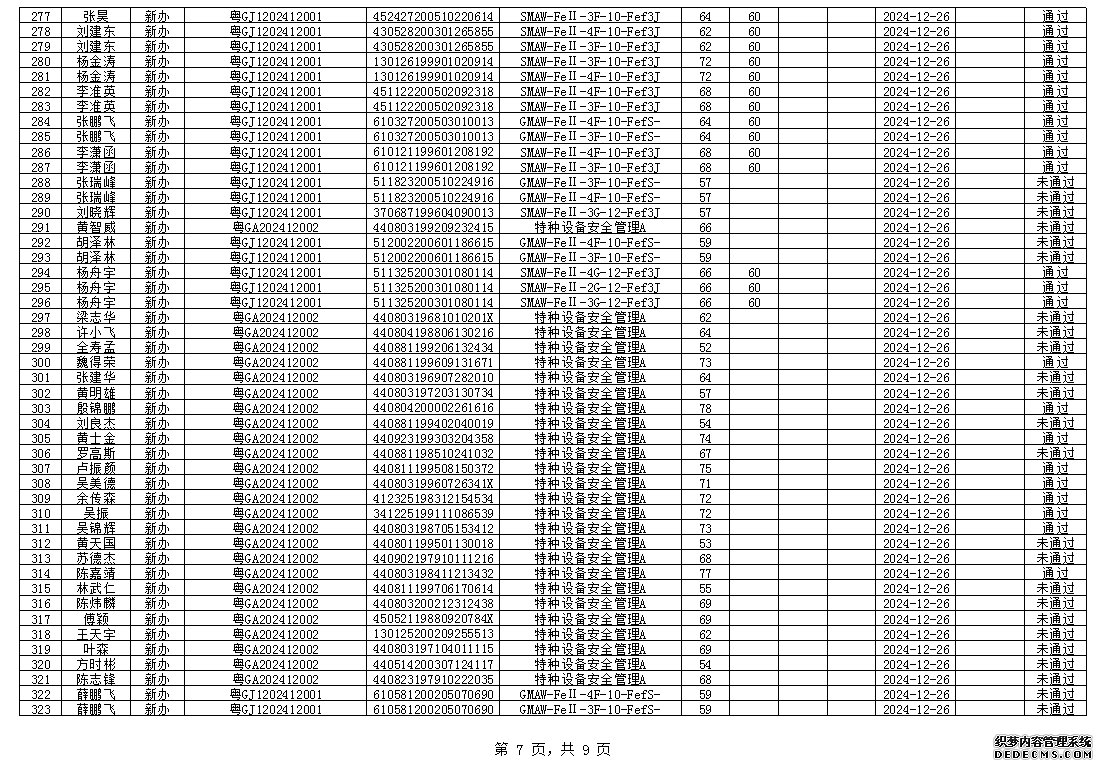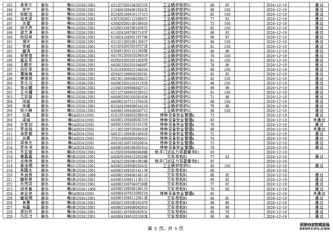 2024年12月特種設(shè)備作業(yè)人員考試成績