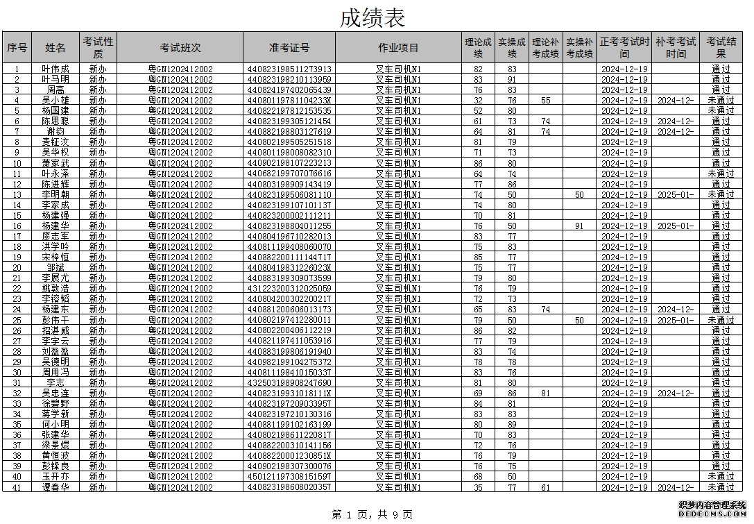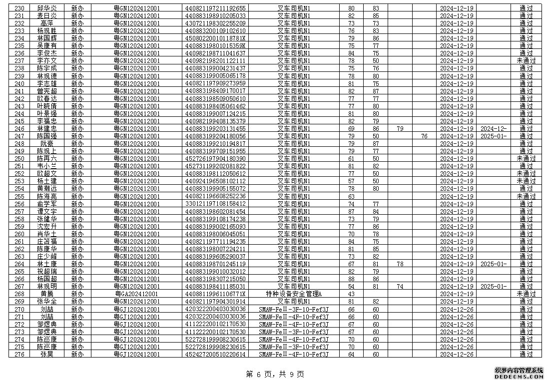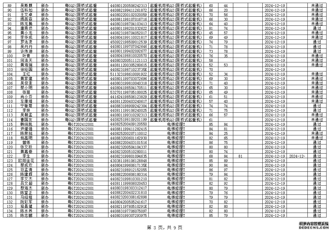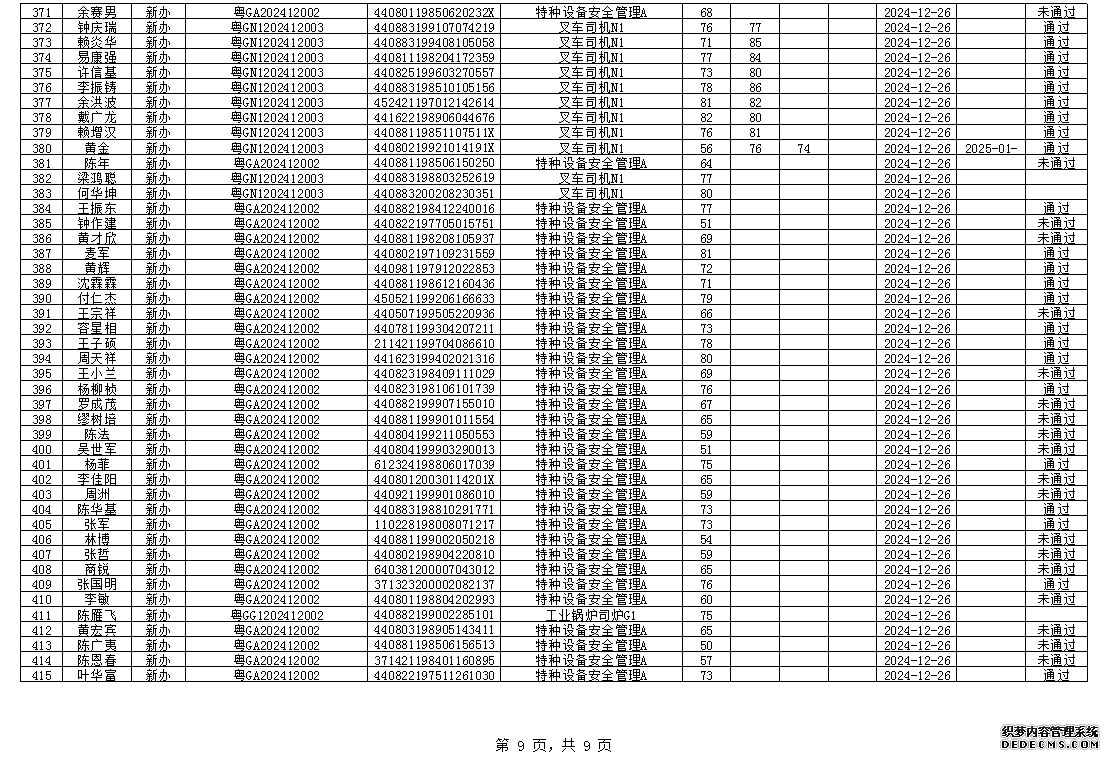 2024年12月特種設(shè)備作業(yè)人員考試成績